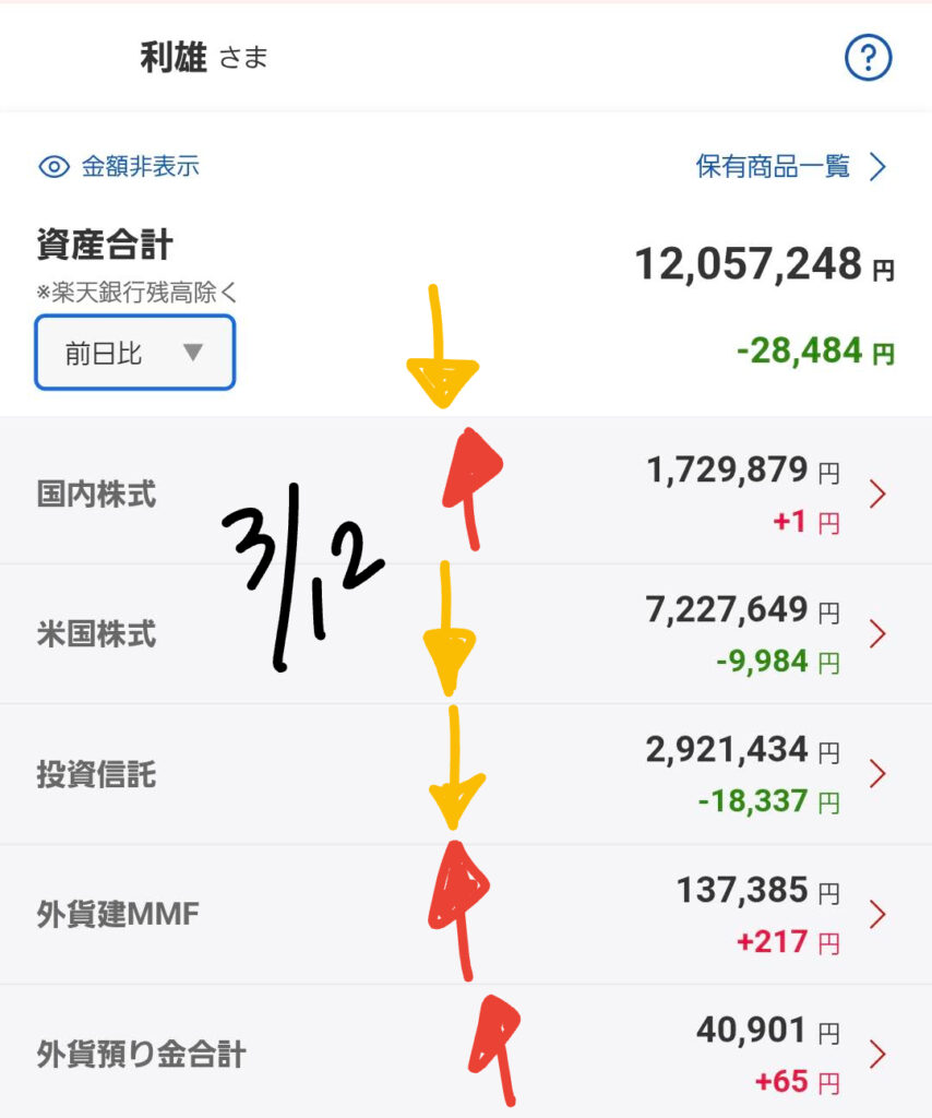 - 米国株式評価額: 前日比 ⬇️ ー9,984円
