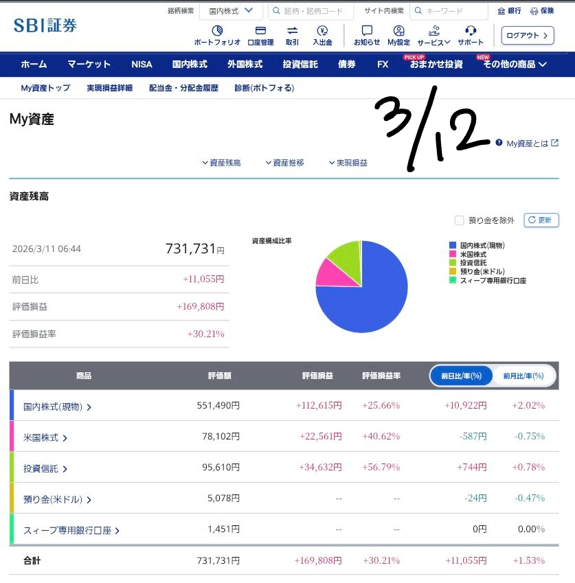【2026年3月12日】日経平均55,000円突破!私のポートフォリオ現状と今後の見通し