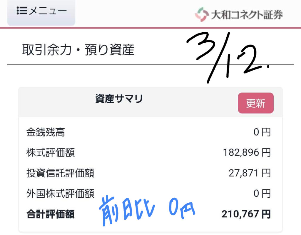 - 合計評価額: 前日比 ➡︎ 0円