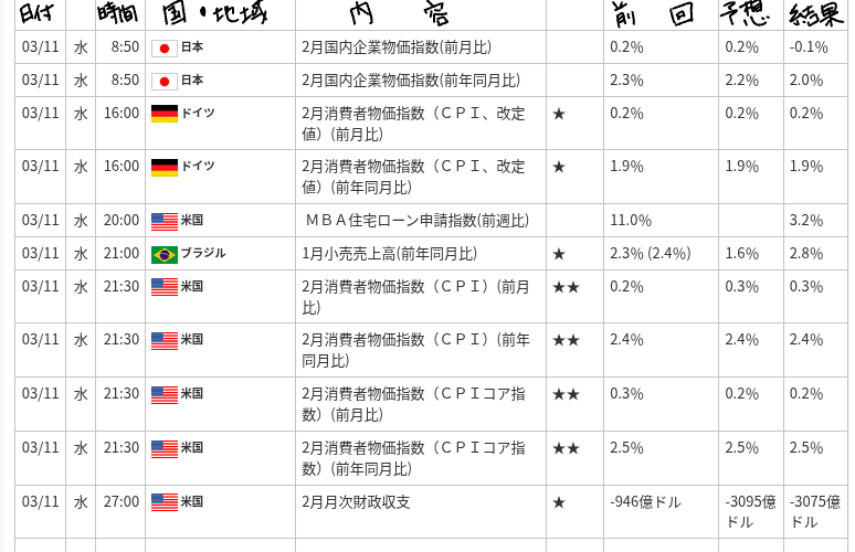 2026年3月11日の指標発表は、全体として**「インフレの沈静化と経済の安定」**を確認する内容となりました。