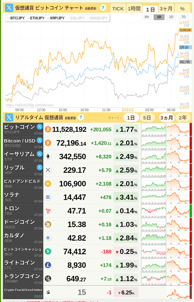 📊 主要市場データ(2026年03月16日 07:04 時点)