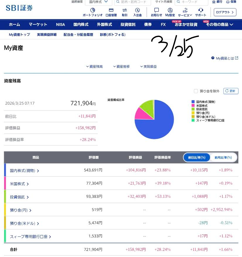 - VOO(S&P500)/ VYM(高配当): ⬆️米国市場の「リスクオン(利益を狙った買い)」の恩恵を直接受け、含み益が一段と拡大しました。